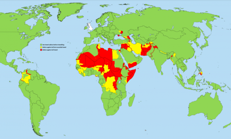 بريطانيا تصدر خريطة التحذيرات السياحية “الأهم في العالم ” شاهد المناطق الآمنة وغير الآمنة