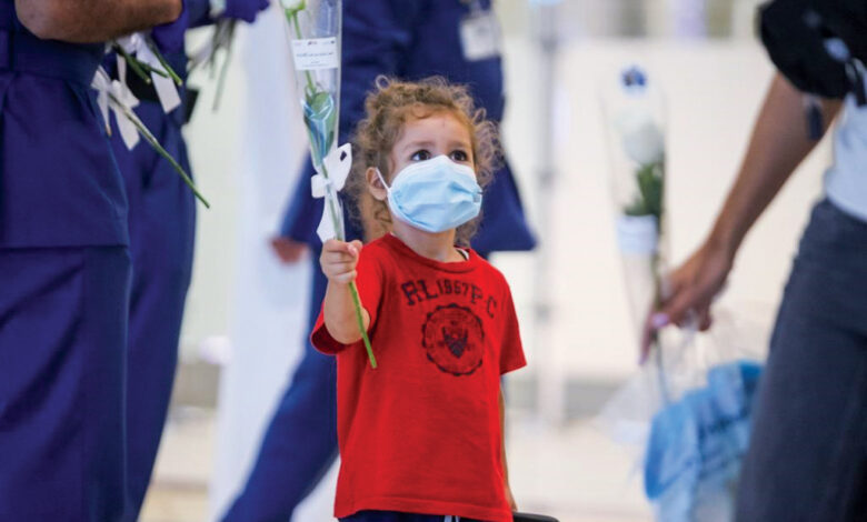 استقبل مطار دبي الدولي المسافرين اللبنانيين لدى وصولهم بالورود والدعاء بالسلامة.