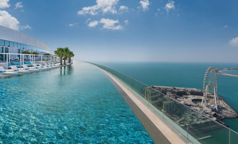 بالصور .. افتتاح أعلى مسبح لا متناهي في العالم بدبي