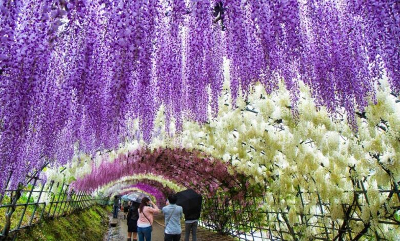 بالصور .. شاهد نفق زهور الوستارية الساحر في اليابان
