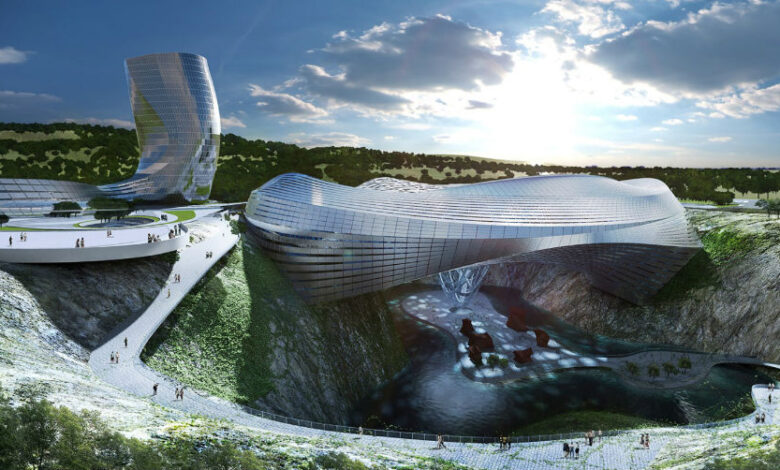 ويكون الفندق من 19 طابق معظمهم تحت سطح الأرض فهم مقسمين 16 طابقًا تحت الأرض أما الثلاثة طوابق الباقيه فهم في الأعلى ، ويحتوي الفندق على 380 غرفة ، كما يحيط بذلك الفندق حديقة رائعة على ، ويشمل أيضا على مطاعم أنيقة ، أما عن الجزء السفلي أي أول طابقين تحت الأرض فهم عبارة عن مطعم تحت الماء ومجمع رياضي لممارسة الرياضات المائية ، و يتم استخدام المنحدرات المحيطة في ذلك الفندق بعد بنائه لممارسة الرياضات المتطرفة مثل القفز بالحبال وتسلق الصخور.