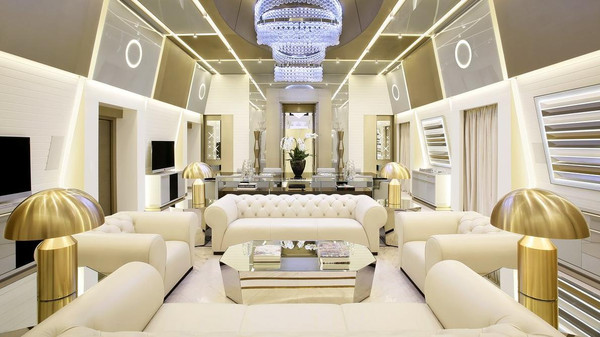 ويضم الجناح حمام بخار وغرفة ساونا وبركة “جاكوزي” ومعدات رياضية، كما يضم غرفة جلوس وعددا من المرافق الأخرى، إضافة إلى حمام بالغ الفخامة والرقي وشرفة خارجية خاصة، ومائدة طعام تستوعب 10 أشخاص للجلوس حولها، ويتسع هذا الجناح لثمانية أشخاص.