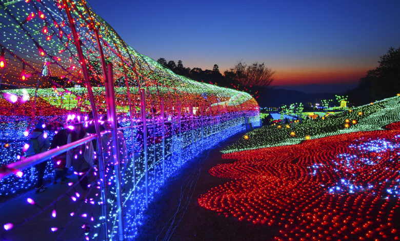 مهرجان الزهور في الشتاء “Flowers in Winter”، هو واحد من المهرجانات المثيرة للاهتمام بشكل واسع في اليابان وفي العالم بشكل عام. يقام المهرجان السنوي Glitsinies او مهرجان الزهور المضيئة الذى يجذب اليه الالاف ويقام المهرجان فى بارك أشيكغ في توتشيغي، اليابان، وتقع على بعد ساعتين فقط من محطة طوكيو بالقطار ويضم المهرجان أكثر من 350 نوع من الزهور التى تملأ الفضاء بالألوان المبهرة ويمكن للضيوف المشي من خلال نفق بطول 80 مترا مغطى بالزهور .