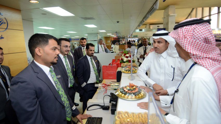 والتقى الجاسر بعدد من ضيوف “السعودية” من كبار السن وذوي الاحتياجات الخاصة واطمأن منهم على توفر كافة الخدمات التي يحتاجونها بيسر وسهولة وعلى تواجد الفريق المكلف بخدمتهم على مدار الساعة معبرًا عن اعتزاز الخطوط السعودية وفخرها بخدمتهم وتوفير كل ما يلزم ليكون سفرهم سهلاً ومريحًا.
