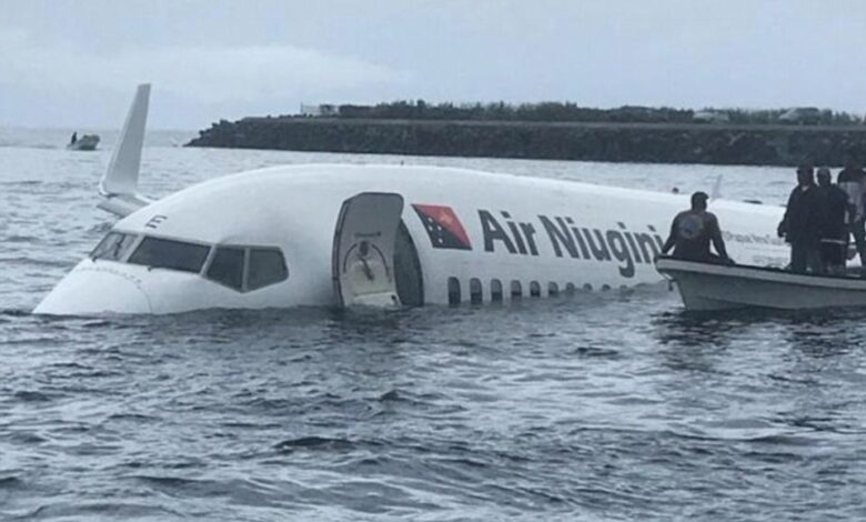 في حادث غريب استطاع قائد طائرة الهبوط بسلام في بحيرة متصلة بالمحيط بإحدى دول المحيط الهادئ وإنقاذ حياة 57 راكباً كانوا على متنها بينهم 11 من أفراد الطاقم، الطائرة وهي من نوع «بوينج737-800» كانت تستعد للهبوط في مطار بجمهورية ولايات ميركونيسيا المتحدة، قبل أن تسقط فيالمحيط.