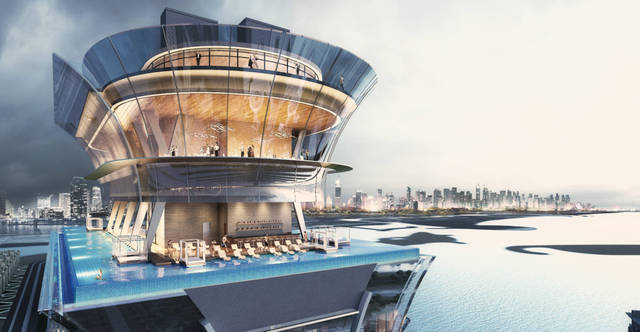 وسيكون حوض السباحة (إنفينيتي) الواقع على السطح وبارتفاع 210 أمتار ويغطي مساحة 775 متراً مربعاً، واحداً من بين أعلى أحواض السباحة في العالم، حيث يطل على جميع جوانب البرج الأربعة، ليوفر إطلالات بانورامية على "نخلة جميرا" والخليج العربي وأفق دبي.