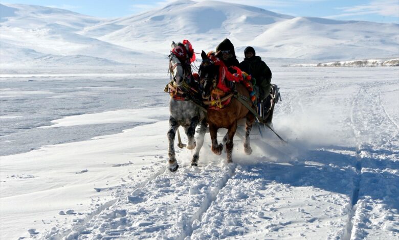 تجذب بحيرة “جيلدير” هواة السياحة الشتوية إذ تتجمد مياهها بشكل كامل مع انخفاض درجات الحرارة إلى ما دون الصفر المئوي في ولاية “أردهان” أقصى شرق تركيا.