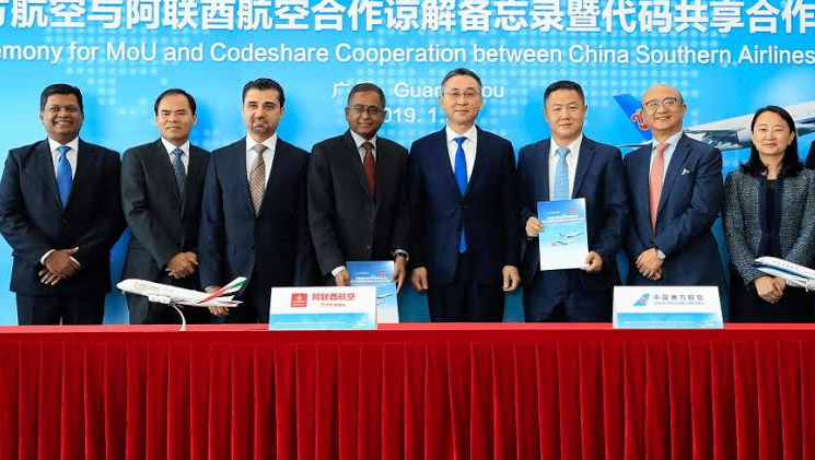 وقّعت "طيران الإمارات" والناقلة الصينية "تشاينا ساذرن إيرلاينز" مذكرة تفاهم بشأن إبرام اتفاقية مشاركة في الرموز، ما سيتيح للمسافرين من الصين إلى الشرق الأوسط وأفريقيا اكتشاف مزيد من الوجهات.