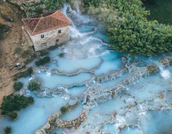 بالقرب من مدينة Saturnia الإيطالية ، هناك مكان رائع حيث تشكل المصادر الحرارية الأرضية شلال Cascate del Mulino غير تقليدي ودافئ طوال الوقت . تعتبر هذه الينابيع الساخنة من اهم مناطق الجذب الرئيسي في المدينة وهي تجمع فريد من المياه الزرقاء وحمامات سباحة منفصلة من أصل طبيعي.