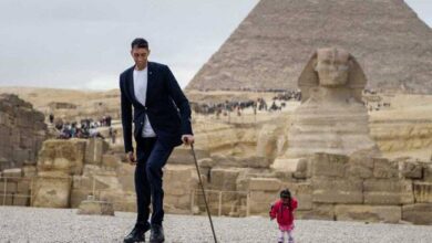 الملايين في العالم تابعوا زيارة أطول رجل وأقصر امرأة لمصر